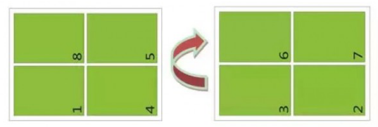 由于正反版兩面都需要進(jìn)行印刷,且需要2付PS版。如8個(gè)頁(yè)面的印刷品,發(fā)排2付四開(kāi)正反版,每個(gè)四開(kāi)上就應該有4個(gè)頁(yè)碼,正反版對應,如下圖所示。正反版印刷適用于一些小的宣傳頁(yè)、名片等。